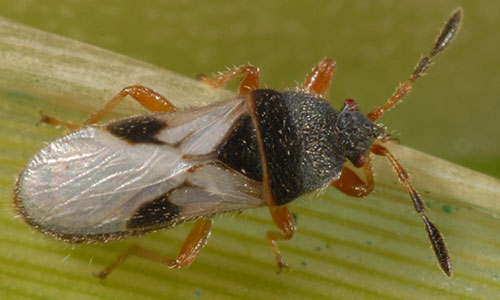 Chinch bugs are a complex of three different species within the Lygaeidae family. They have piercing-sucking mouthparts and they feed on the sap of grass plants.